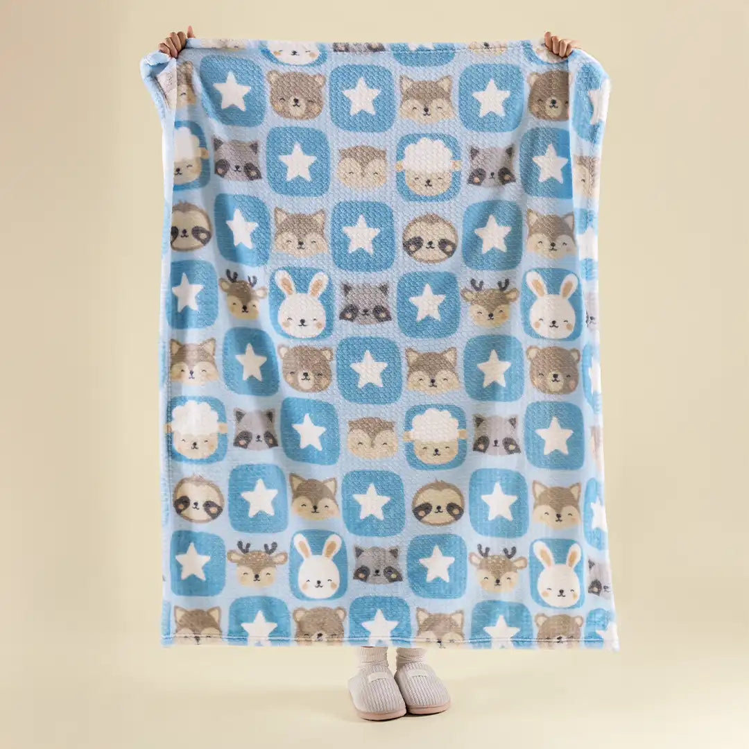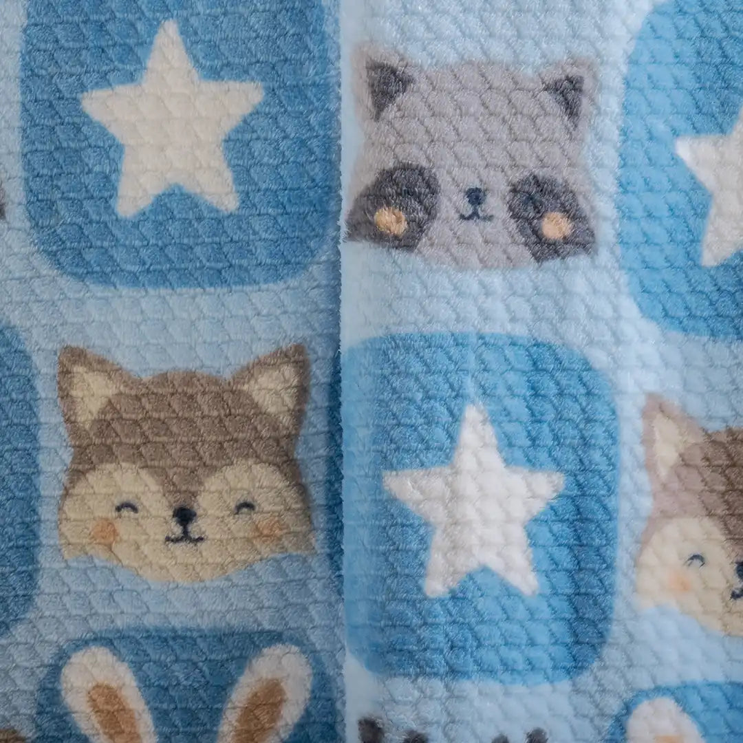 Cobertor estampado con textura jacquard suave y pachoncita. Diseño adorable, calidez media y tamaño comodín para usar en cuna, carriola o siestas. Ligero, práctico y perfecto para acompañar a tu bebé todos los días.
