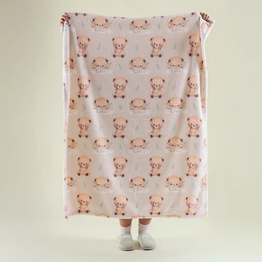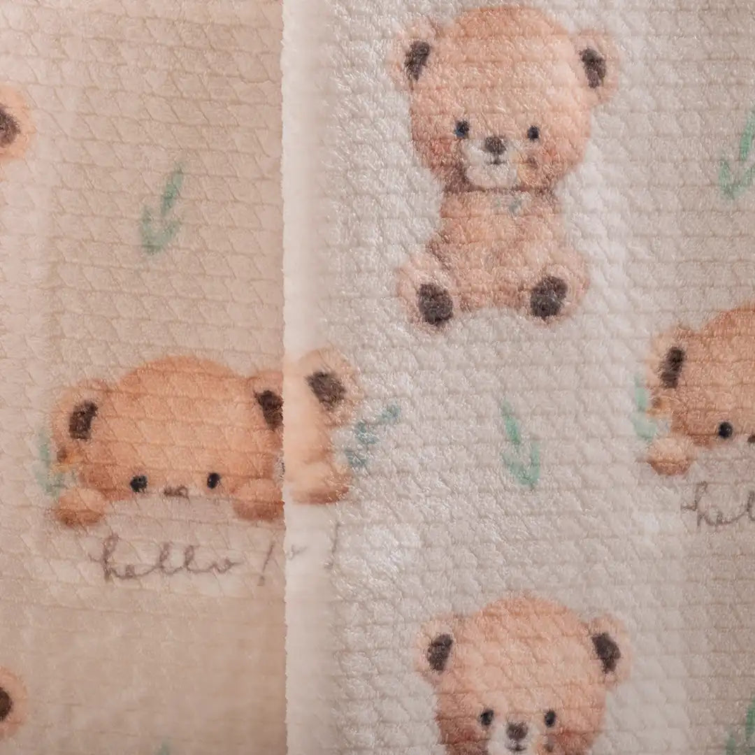 Cobertor estampado con textura jacquard suave y pachoncita. Diseño adorable, calidez media y tamaño comodín para usar en cuna, carriola o siestas. Ligero, práctico y perfecto para acompañar a tu bebé todos los días.