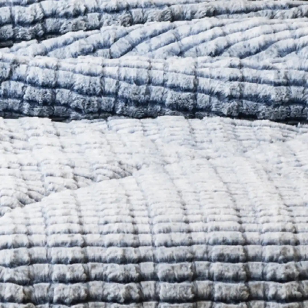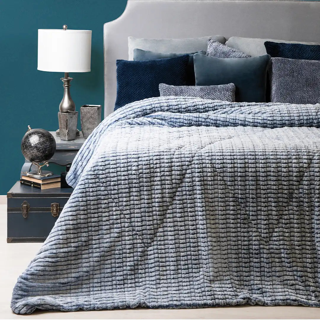 Cobertor Boutique con textura cuadrícula y pelo alto extra suave. Su tono azul niebla aporta frescura, modernidad y un toque relajante a cualquier recámara.