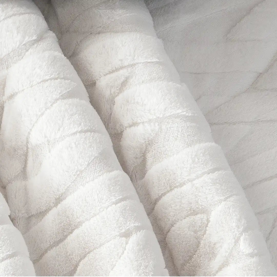 Cobertor Boutique con diseño capitonado tipo relieve entrelazado y pelo alto ultra suave. Su tono blanco aporta una sensación cálida, elegante y moderna a cualquier espacio.