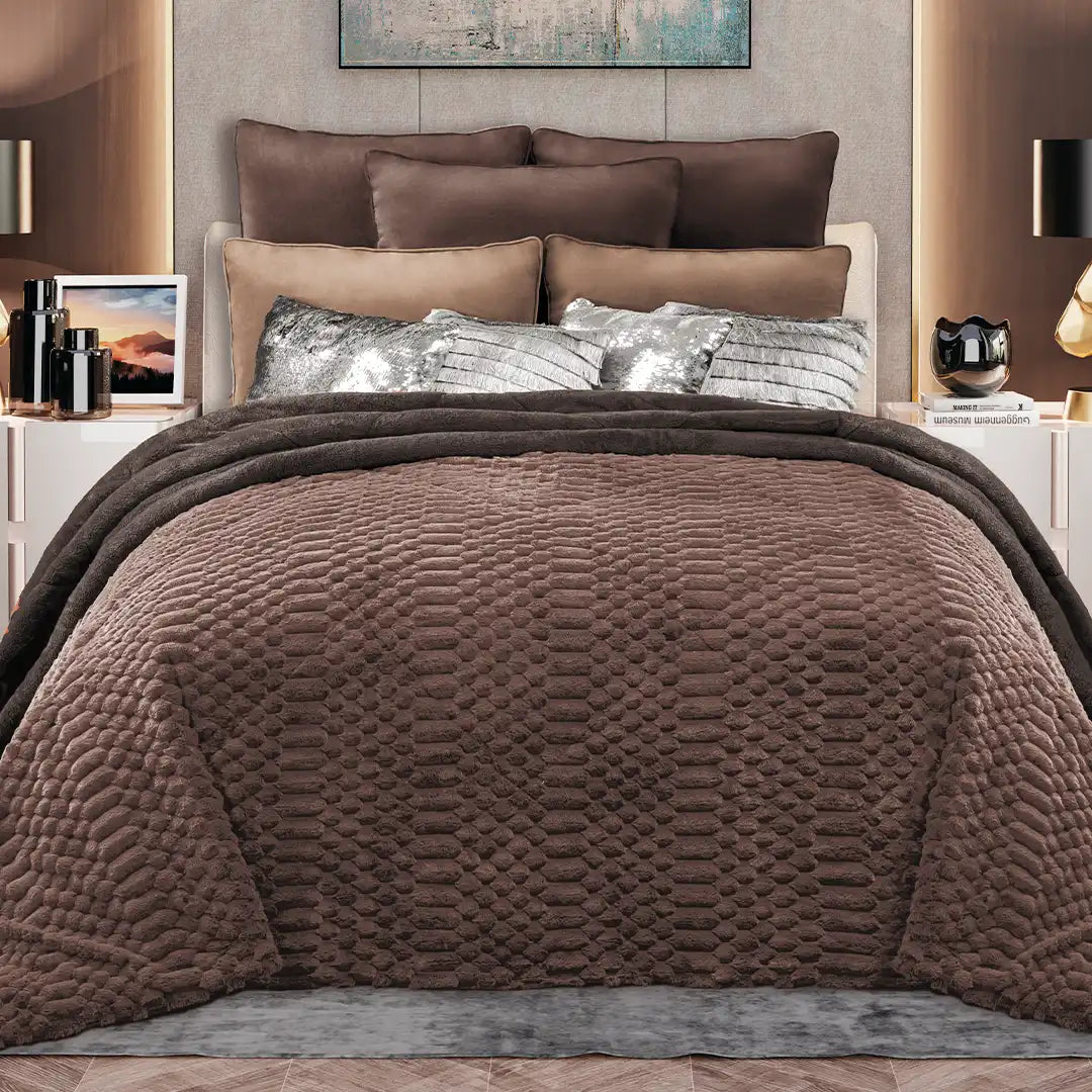 Sumérgete en la suavidad profunda del Edre-Cobertor Mystic, un cobertor de la Línea Boutique, con un diseño tridimensional único que aporta volumen, textura y un look moderno de alto nivel.