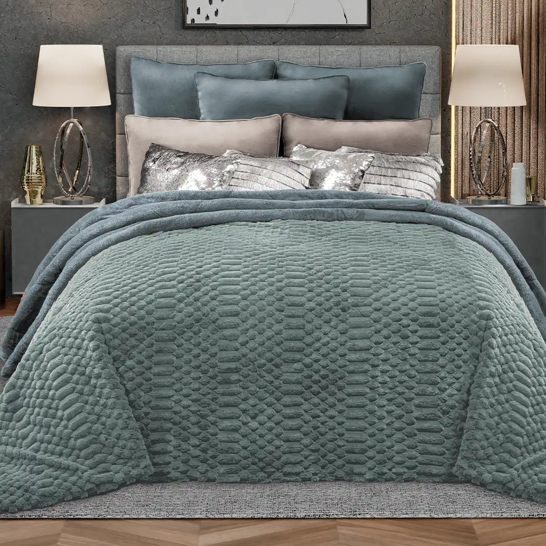Sumérgete en la suavidad profunda del Edre-Cobertor Mystic, un cobertor de la Línea Boutique, con un diseño tridimensional único que aporta volumen, textura y un look moderno de alto nivel.