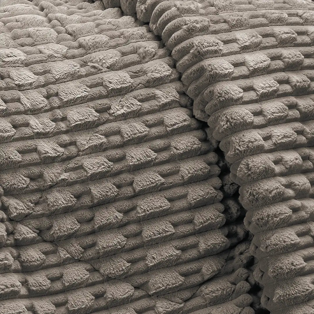 Cobertor Boutique con textura capitonada de alto relieve y patrón ondulado elegante. Pelo alto ultra suave y calidez superior, ideal para recámaras modernas.