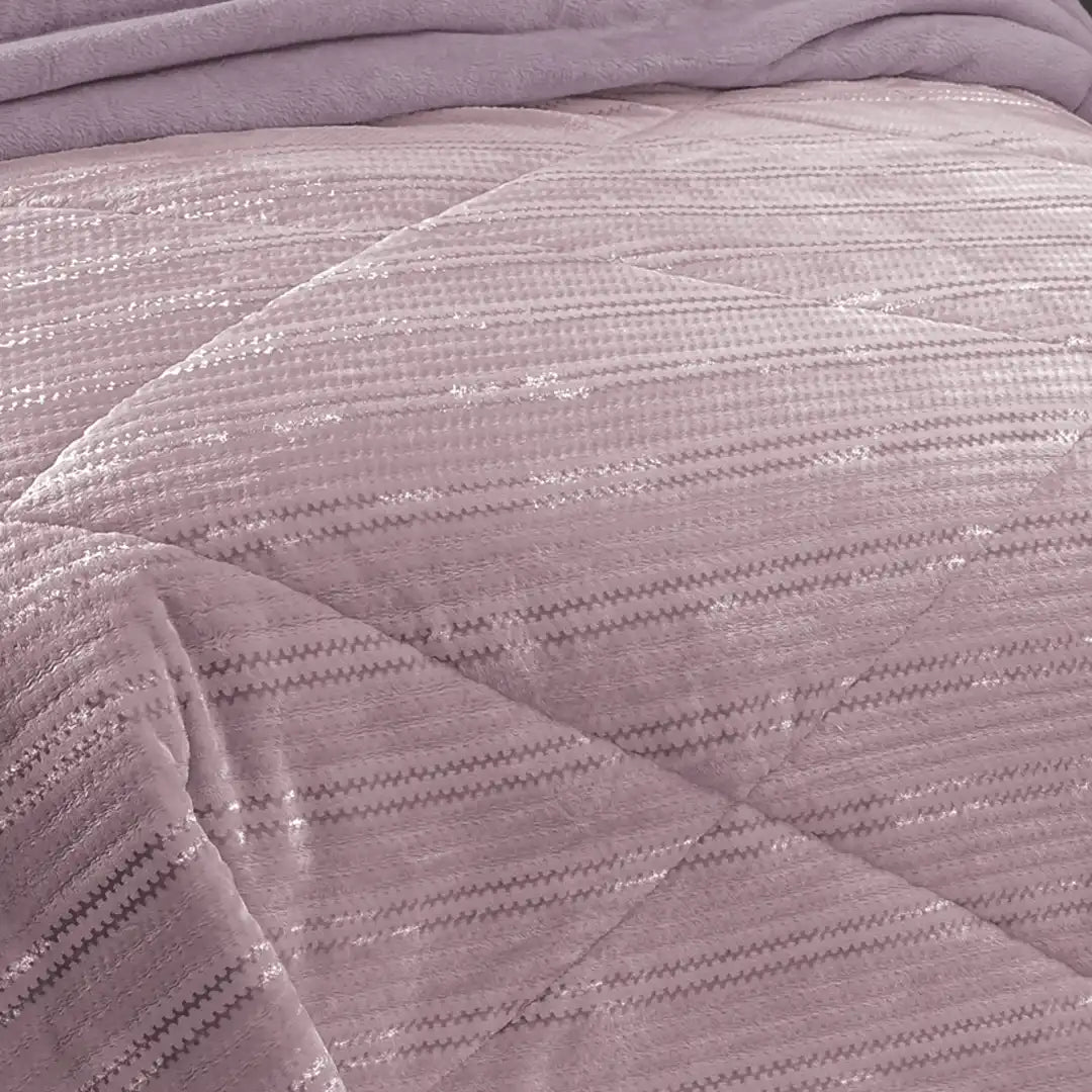 Edre-cobertor Nuvó con textura Shine, un diseño elegante que combina relieves geométricos con un suave brillo que eleva instantáneamente la recámara. Su tejido aterciopelado, cálido y de tacto ultra suave ofrece comodidad excepcional. Disponible en una gama de tonos modernos que transforman cualquier espacio con estilo y sofisticación.