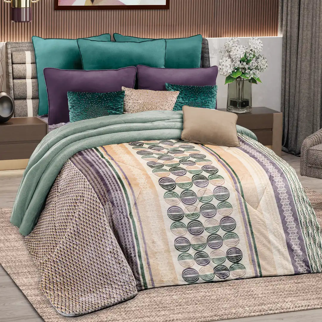 Un diseño fresco y moderno para crear una recámara llena de estilo. Sus estampados orgánicos y geométricos le dan un toque decorativo único, mientras que su tela suave y acolchonada brinda una sensación deliciosamente calientita y muy acogedora. Ideal para quienes aman ambientes tranquilos pero con personalidad.