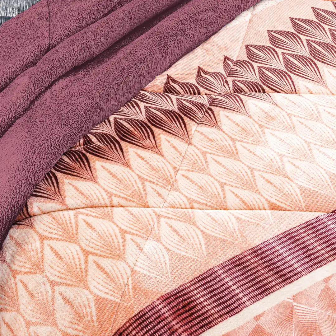 Una combinación preciosa de tonos durazno y vino que le da a la recámara un look moderno y acogedor. Su textura suave tipo piel brinda una sensación ultra calientita, ideal para disfrutar noches cómodas y llenas de estilo.