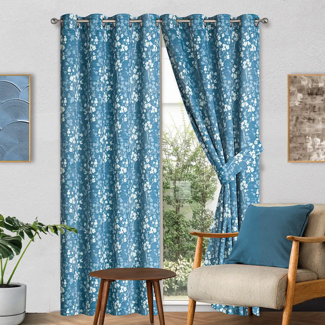 Diseño floral elegante con bloqueo de luz para crear espacios más privados y acogedores. Su caída suave y moderna realza la decoración, e incluyen sujetadores coordinados para un look completo y armonioso.