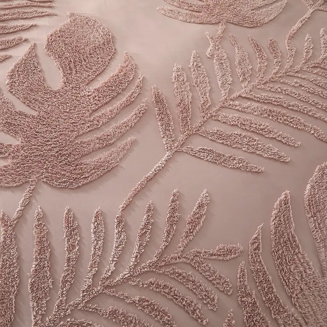 Set de Edredón Oasis en tono rosa viejo/malva con textura Jacquard 3D y motivos botánicos en relieve. Tejido fresco y transpirable, con relleno de volumen medio para una cama elegante y confortable. Incluye cojín decorativo Velvet que aporta suavidad premium.